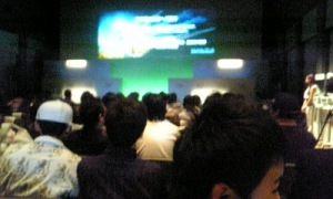 会場に入るとイスがたくさんならんでましたよ。 立ち見かとおもってたんでうれしかったですねb